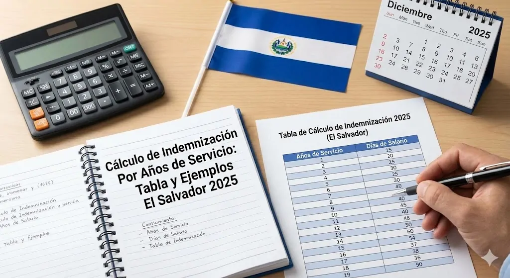 Esta guía actualizada a 2026 explica la fórmula exacta, el nuevo tope calculado correctamente, seis ejemplos reales paso a paso con salarios típicos salvadoreños, la tabla completa por antigüedad y salario, qué ocurre en casos especiales (maquila, sector agrícola, empresa en quiebra, renuncia voluntaria, autodespido), y la diferencia entre indemnización y liquidación completa para que no te queden dudas al momento de firmar o reclamar.