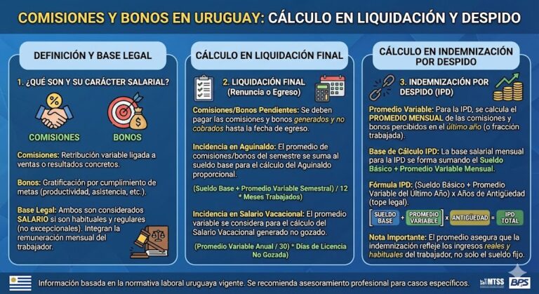 Comisiones y Bonos en Liquidación Uruguay 2026: Ley 12.840 Art. 1°